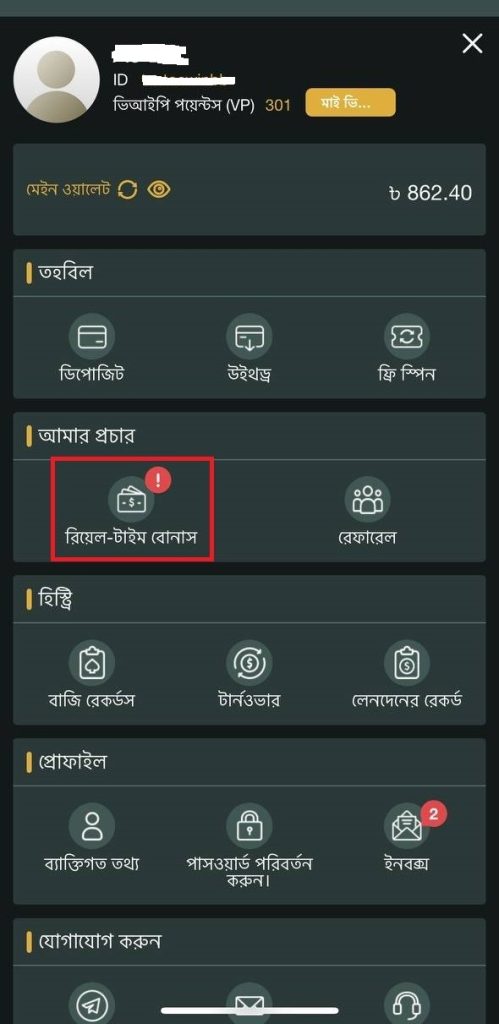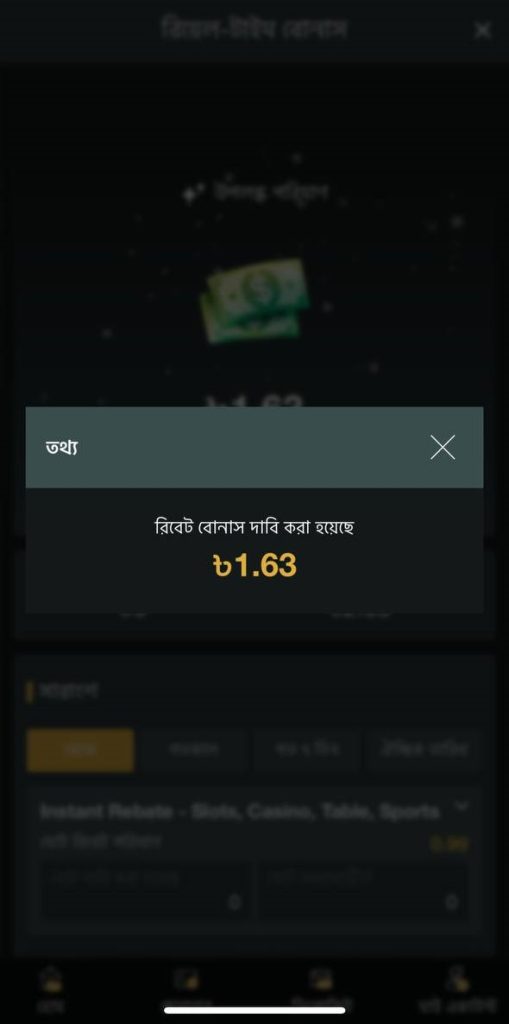 ৪. একটি পপ-আপ ম্যাসেজ প্রদর্শিত হবে, যা নিশ্চিত করবে যে বোনাসটি সফলভাবে দাবি করা হয়েছে।