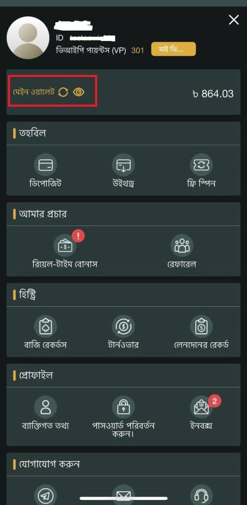৫. মেইন ওয়ালেট -এ ফিরে যান এবং পেজটি রিফ্রেশ করুন, যাতে নিশ্চিত হতে পারেন যে বোনাসটি যোগ হয়েছে।